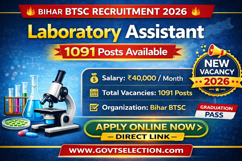 BTSC Bihar Lab Assistant Notification 2026 notification released for 1091 posts. Check eligibility, age limit, salary, selection process, important dates and apply online link. Get complete details on Govt Selection.